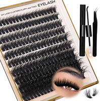 Kit de pestañas gruesas y esponjosas 100D 200D, venta al por mayor, Wispy D Curl, Kit de extensión de pestañas Diy Individual con pinzas y Bond & Seal
